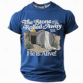 Why Choose Christian Resurrection Faith Men's Graphic T-Shirt | 'The Stone Was Rolled Away He Is Alive' Easter Blue Short Sleeve?