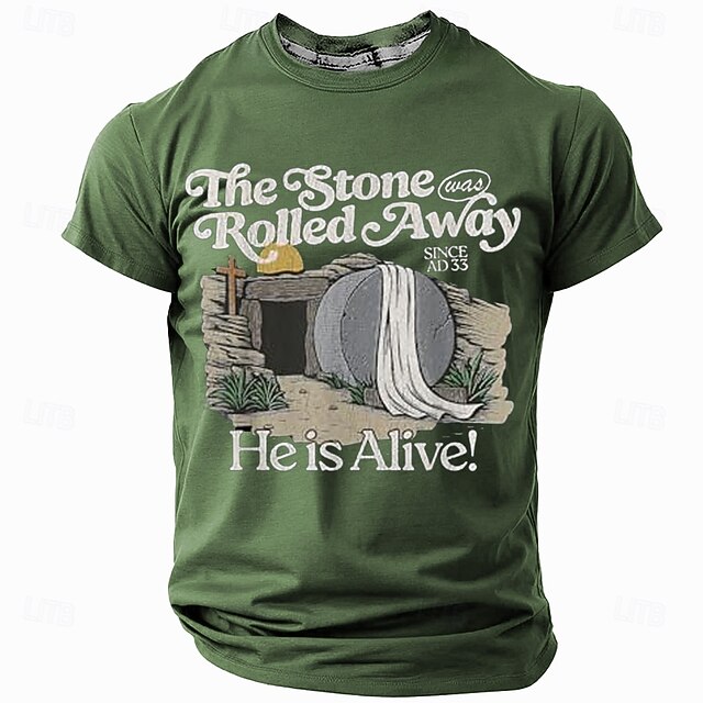 At www.nosterstudio.co.uk, we believe in providing our customers with only the best products. This Christian Resurrection Faith Men's Graphic T-Shirt | 'The Stone Was Rolled Away He Is Alive' Easter Blue Short Sleeve is designed with attention to detail and high quality craftsmanship that you can see and feel. Whether you're looking for functionality, style, or both, this product delivers exceptional value.