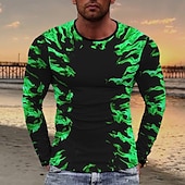 sizzling ! Men's Geometric Flame T Shirt Long Sleeve T shirt 3D Print Shirt Fashion Exaggerated Designer Vacation Street Sports Black / Green Summer Spring Clothing Apparel S M L XL XXL XXXL