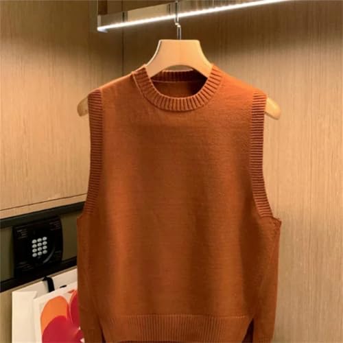 sizzling ! Men's Sleeveless Knit Sweater Vest - Male Crewneck Solid Color Waistcoat With Plain Round Collar