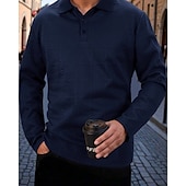 More information about Men's Golf Shirt Golf Polos Shirts Work Casual Lapel Long Sleeve Basic just-arrived-age Plain Buttons Jacquard Spring Fall Regular Fit Black White Navy Blue Khaki Army Green Gray Golf Shirt
