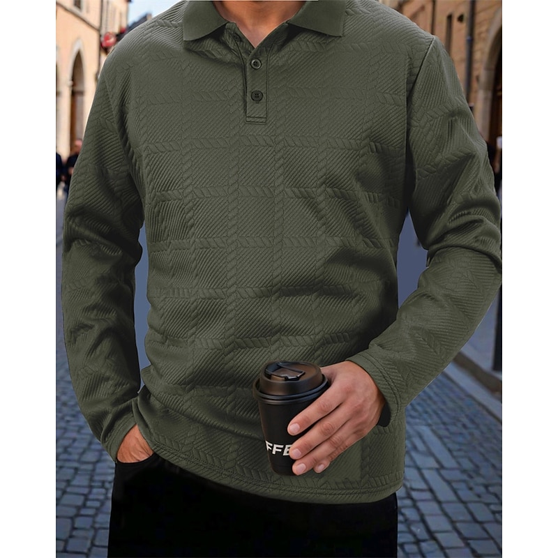 sizzling ! Men's Golf Shirt Golf Polos Shirts Work Casual Lapel Long Sleeve Basic current Plain Buttons Jacquard Spring Fall Regular Fit Black White Navy Blue Khaki Army Green Gray Golf Shirt