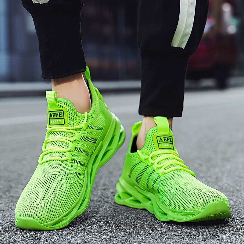 Why Choose Men's Neon Green Sports Sneakers - Breathable Mesh Lightweight Running Shoes with Cushioned Sole for Gym, Training and Outdoor Activities?