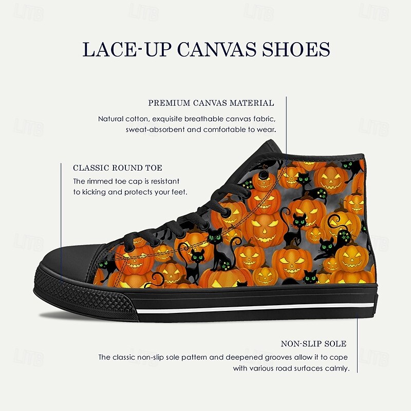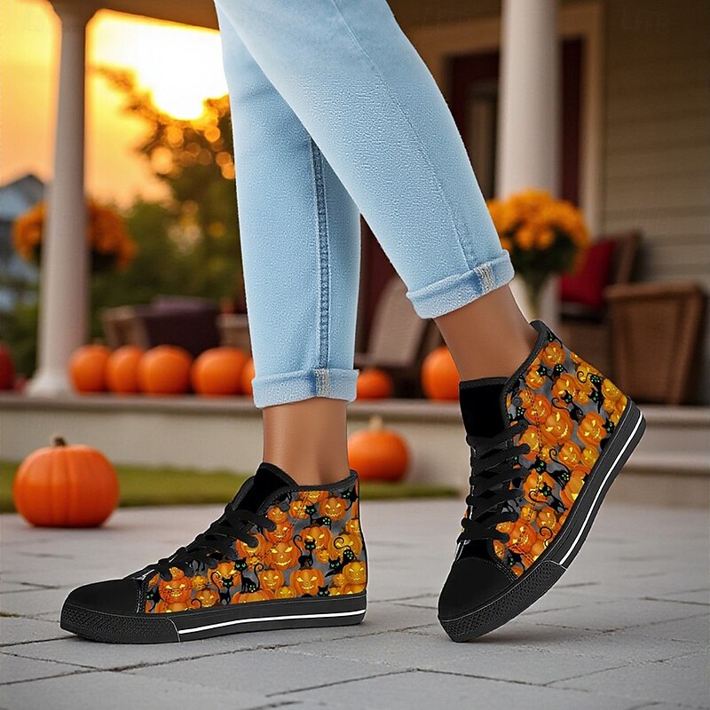 $46.99 - Women's High Top Canvas Sneakers with Cat and Pumpkin Print – Gothic Halloween Party Shoes for Walking and Casual Wear 2025. Shop for cheap Shoes For Women online? Buy at lightinthebox.com on sale today!