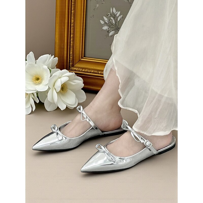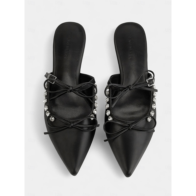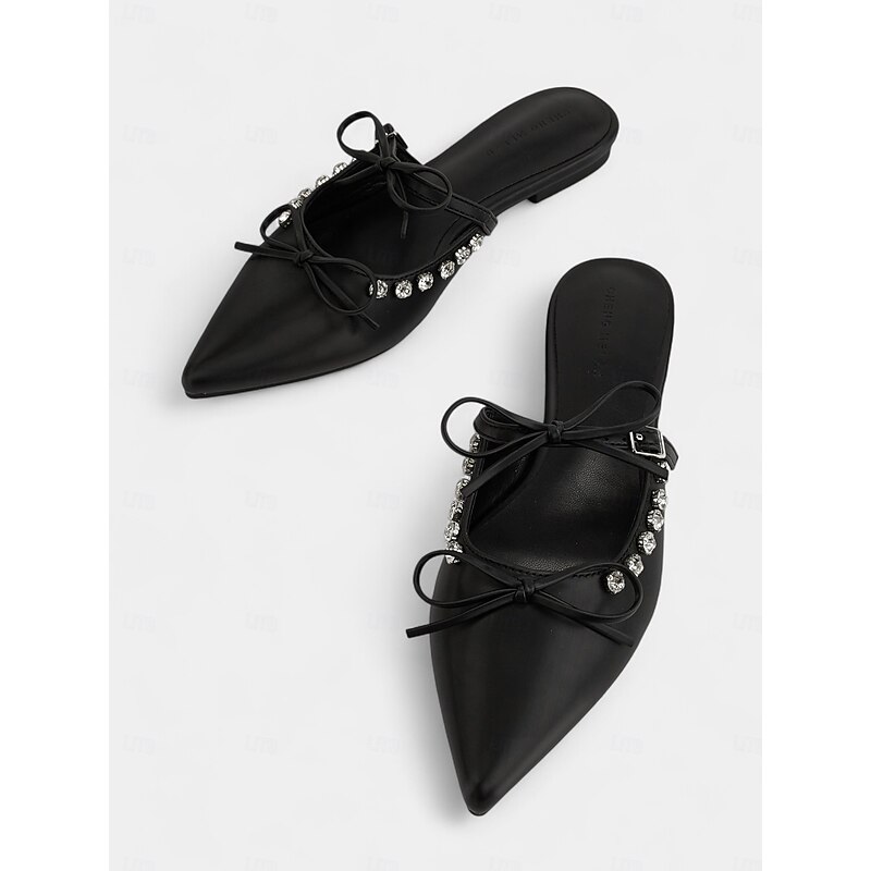 Women's Black Pointed Toe Flats with Rhinestone Embellishments and Double Bow Straps - Elegant Nightlife Party Shoes 17