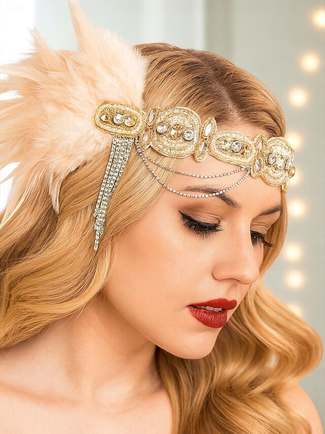 $19.99 - Women's 1920s Gold Beaded Feather Headband with Rhinestone Chains - Vintage Gatsby Party Flapper Hair Accessory 2025. Shop for cheap Women's Hair Accessories online? Buy at lightinthebox.com on sale today!