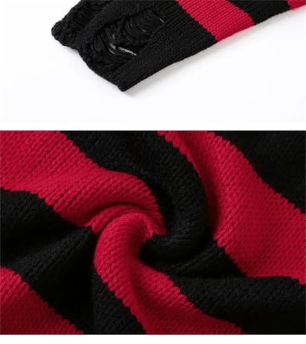 Men's Striped Sweaters Men Hollow Out Punk Unisex Sweater Jumpers Loose Oversized Pullouvers 6