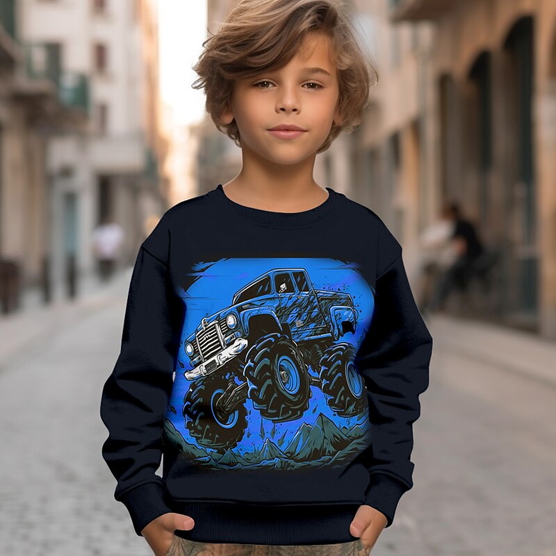 Boys 3D Car Fire Sweatshirt Pullover Long Sleeve 3D Print Fall Winter Fashion Streetwear Cool Polyester Kids 3-12 Years Outdoor Casual Daily Regular Fit 25