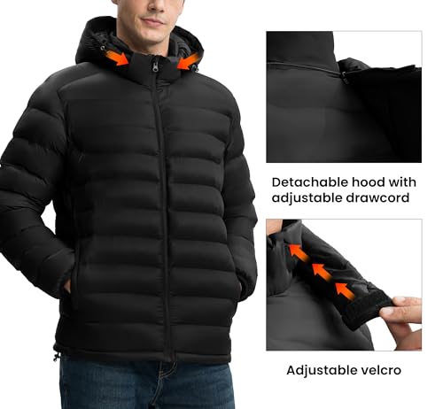 Gopune Men's Lightweight Puffer Jacket Detachable Hooded Water Resistant Puffy Winter Down Jackets for Snow Ski Travel 6