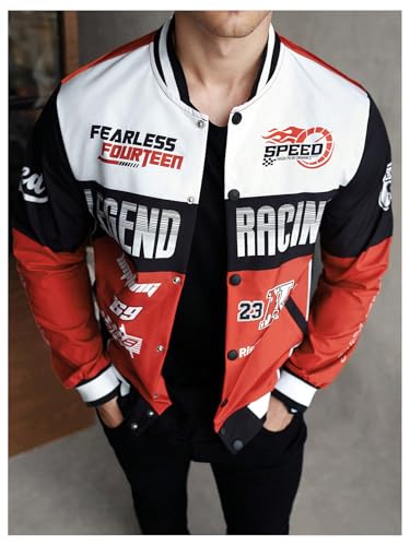 More information about SOLY HUX Men's Button Down Graphic Varsity Jackets Racing Motorcycle Outerwear Streetwear