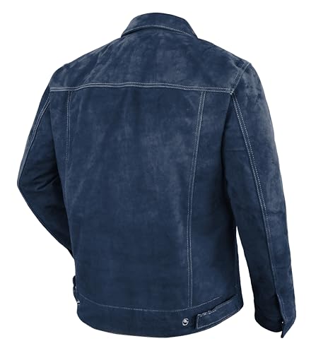 LP-FACON Mens Suede Trucker Jacket - timeless Western Style, supple Genuine Suede Leather, Casual Lightweight Outerwear