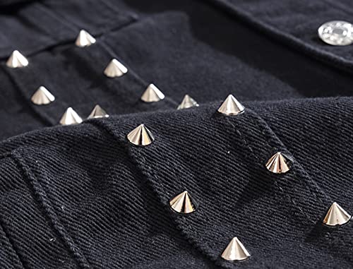 Men`s Retro Gothic Punk Studded Denim Jeans Vest Sleeveless Jacket With Rivet 5