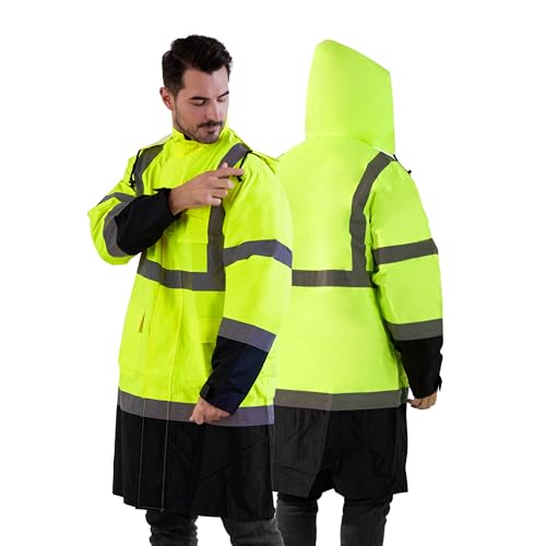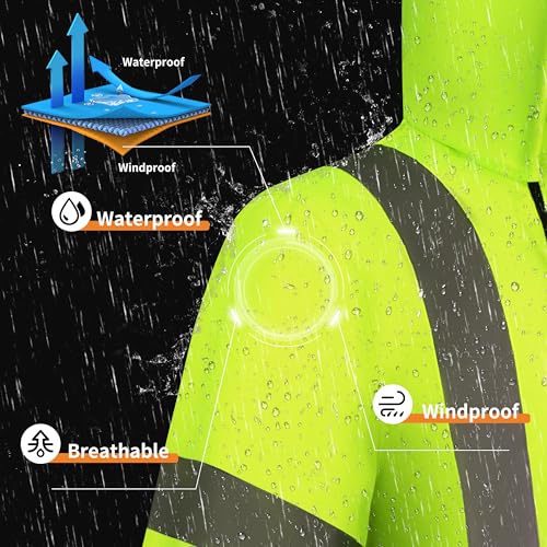 Z&Q LABOR Raincoat Safety Work Rain Gear for Men Waterproof with Hood, High Visibility Rain Gear,Rain Suits for Men 7