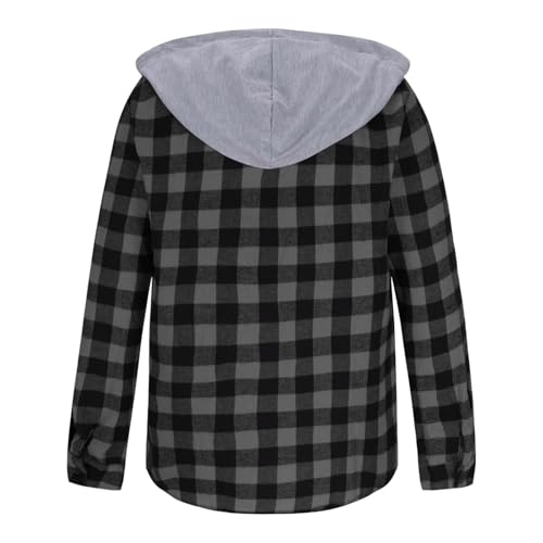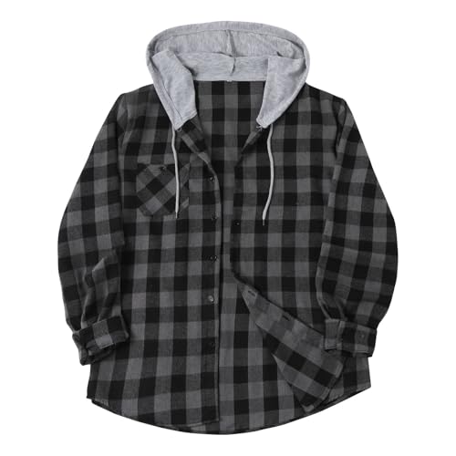 Button Down Shirt Men Casual Plaid Flannel Shirt Jacket Regular Fit Long Sleeve Shirts Checkered Fall Jacket with Hood 6