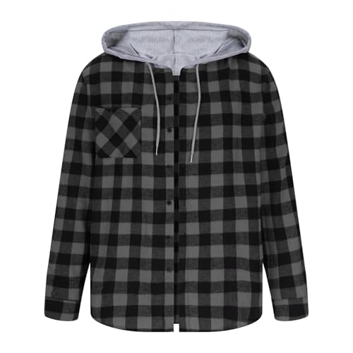 sizzling ! Button Down Shirt Men Casual Plaid Flannel Shirt Jacket Regular Fit Long Sleeve Shirts Checkered Fall Jacket with Hood