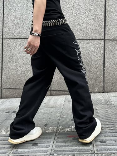 More information about Mens Baggy Jeans Goth Steampunk Y2k Wide Leg Denim Pants with Cargo Pockets Skater Streetwear Punk Cargo Pants Trousers