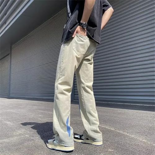 sizzling ! Men's Trousers with Pockets Straight Male Cowboy Vintage Clothing Korean Kpop Jeans