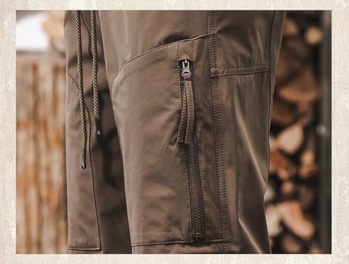 Men's Hiking Cargo Pants Drawstring Elastic Waist Casual Outdoor Sweatpants with Zipper Pockets