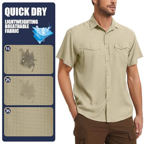 Men's Safari Hiking UPF 50+ UV Short Sleeve Button Shirt Lightweight Cooling Quick Dry Outdoor Sun Protection Fishing Shirts 4