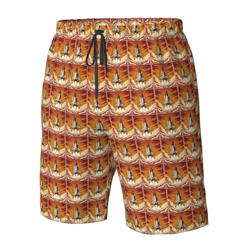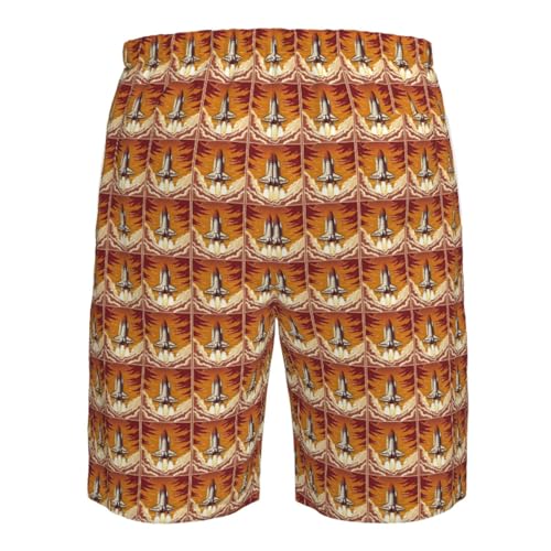 Rocket in Space Print Stylish Beach Shorts Swim Trunks Lightweight Breathable Summer Outdoor Activities 1