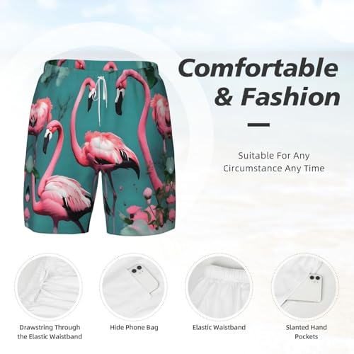 Flamingo Flowers Print Mens Swim Shorts Trunks Inseam Compression Liner prompt Dry Zipper Pocket