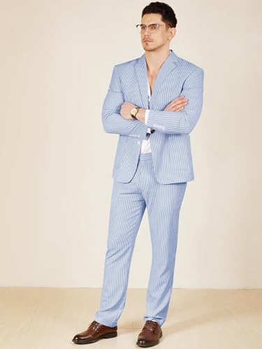 WEEN CHARM Men's 2 Piece Slim Fit Pinstripe Seersucker Suit Lightweight Breathable for Beach Wedding Summer Formal 2