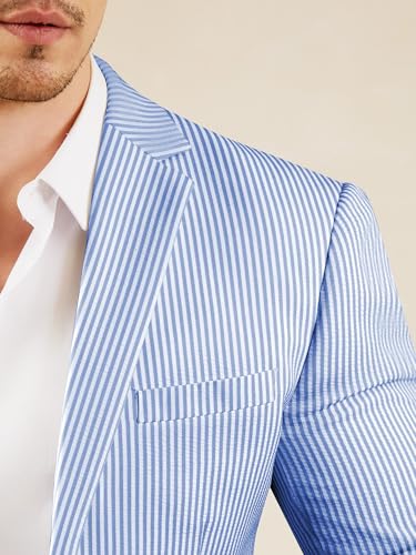 WEEN CHARM Men's 2 Piece Slim Fit Pinstripe Seersucker Suit Lightweight Breathable for Beach Wedding Summer Formal 6