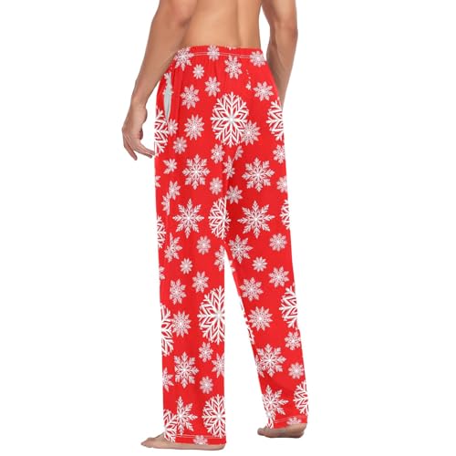White Snowflakes Red Pajama Pants for Men Comfy Pajama Bottoms Cotton Lounge Pants with Pockets