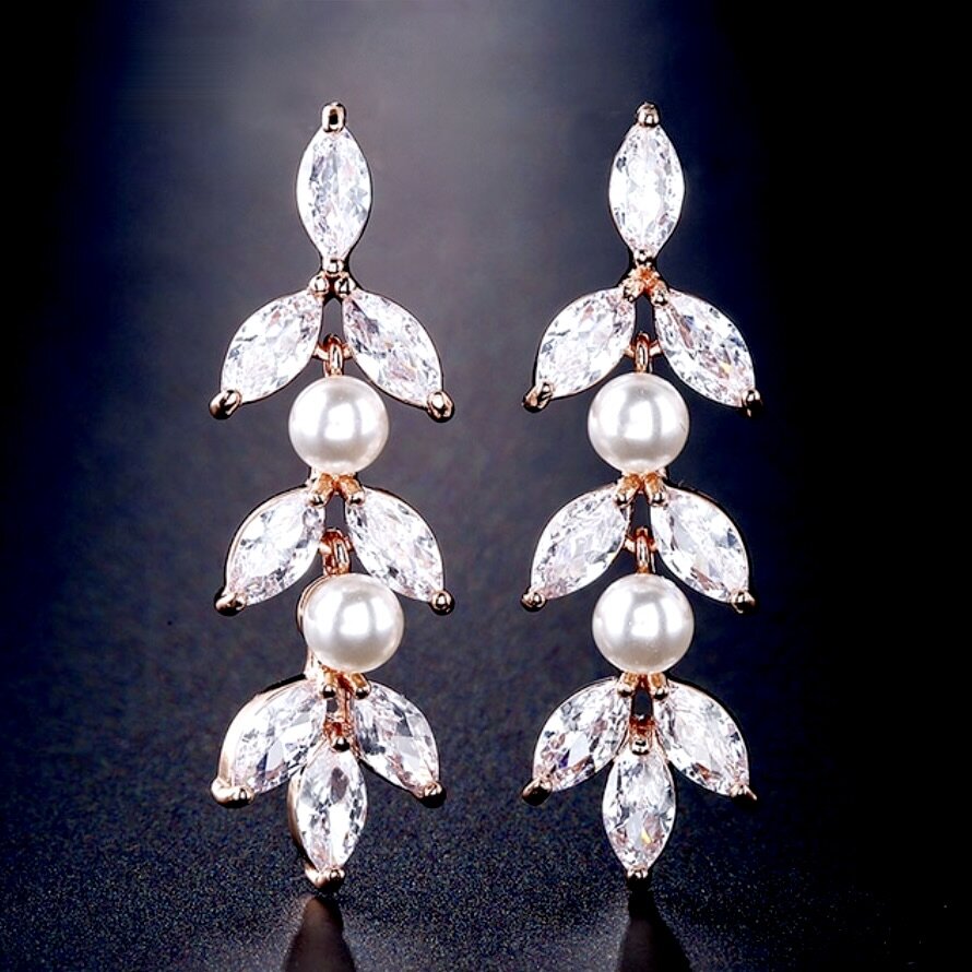 sizzling ! "Sadie" Pearl Bridal Earrings Available in Silver, Rose Gold and Yellow Gold